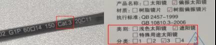 目前市售兩種類別太陽眼鏡,一類遮陽鏡,另一類是淺色太陽眼鏡。分類不同,用途截然不同,建議購買時(shí)查看鏡腿或標(biāo)簽上的類別和分類,根據(jù)實(shí)際使用場景,按需選購。