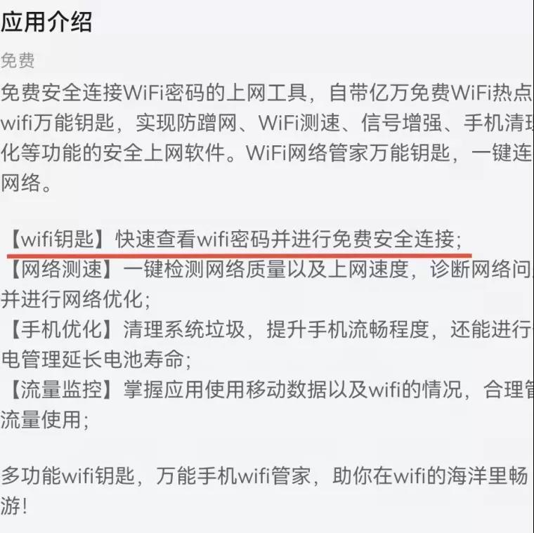 如果有的軟件真的能如介紹所說輕松破解WIFI密碼功能,那更是涉嫌違法行為。