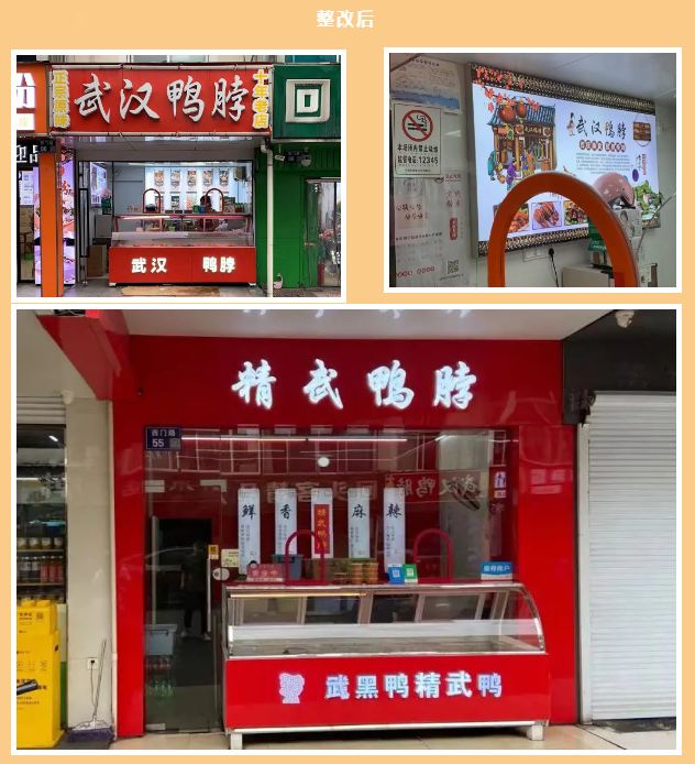 接報后,市市場監(jiān)督管理局執(zhí)法人員對涉嫌虛假宣傳的兩家店鋪進(jìn)行了現(xiàn)場檢查。經(jīng)查,其中某食品店的門頭招牌為“武漢鴨脖”,某小吃店的門頭招牌為“精武鴨脖”,現(xiàn)場檢查發(fā)現(xiàn)這兩家店鋪銷售的商品為精武鴨脖而非周黑鴨鴨脖,但在經(jīng)營場所內(nèi)的墻上和冰箱等處發(fā)現(xiàn)周黑鴨logo與文字遺留的痕跡。被舉報人稱已經(jīng)自行對周黑鴨圖案和文字進(jìn)行了清除,執(zhí)法人員對發(fā)現(xiàn)的痕跡處要求被舉報人徹底清理。
