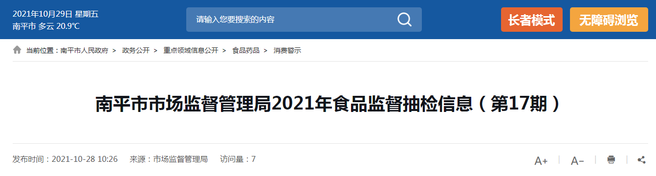 中國(guó)質(zhì)量新聞網(wǎng)訊 近日,福建省南平市市場(chǎng)監(jiān)督管理局發(fā)布2021年食品監(jiān)督抽檢信息(第17期)。本期檢出1批次不合格食品。