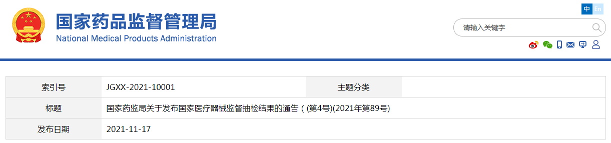 中國質量新聞網訊 11月17日,國家藥監(jiān)局網站公布國家醫(yī)療器械監(jiān)督抽檢結果(第4號)(2021年第89號)。為加強醫(yī)療器械監(jiān)督管理,保障醫(yī)療器械產品質量安全有效,國家藥監(jiān)局組織對半導體激光治療機、高頻手術設備、合成樹脂牙等14個品種進行了產品質量監(jiān)督抽檢,共26批(臺)產品不符合標準規(guī)定。具體情況如下: