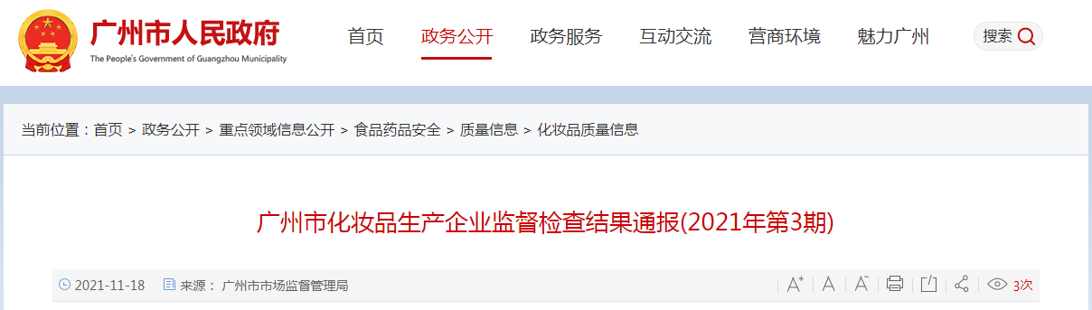 廣州市化妝品生產(chǎn)企業(yè)監(jiān)督檢查結果通報(2021年第3期)