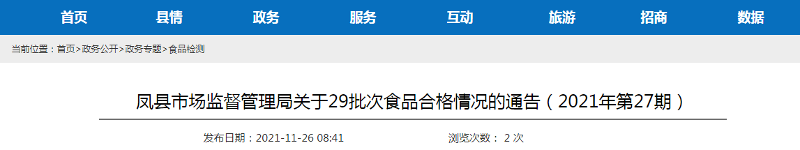中國質(zhì)量新聞網(wǎng)訊 近日,陜西鳳縣市場監(jiān)督管理局發(fā)布關(guān)于29批次食品合格情況的通告(2021年第27期)。通告稱,近期,該局組織抽檢食用農(nóng)產(chǎn)品1大類食品共計(jì)29批次,檢驗(yàn)結(jié)果全部合格。