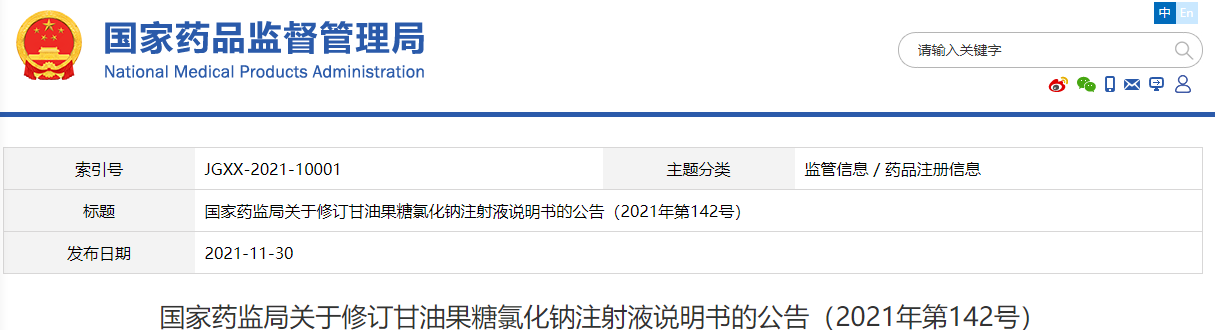 一、上述藥品的上市許可持有人均應(yīng)依據(jù)《藥品注冊(cè)管理辦法》等有關(guān)規(guī)定,按照甘油果糖氯化鈉注射液說(shuō)明書修訂要求(見附件),于2022年2月28日前報(bào)國(guó)家藥品監(jiān)督管理局藥品審評(píng)中心或省級(jí)藥品監(jiān)督管理部門備案。