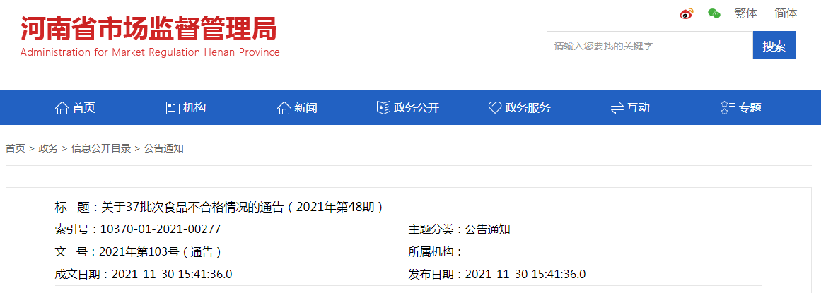 中國質(zhì)量新聞網(wǎng)訊 11月30日,河南省市場監(jiān)督管理局網(wǎng)站發(fā)布關(guān)于37批次食品不合格情況的通告(2021年第48期)。通告稱,近期,該局組織抽檢了餅干、餐飲食品、茶葉及相關(guān)制品、炒貨食品及堅果制品、方便食品、罐頭、酒類、糧食加工品、食用農(nóng)產(chǎn)品、蔬菜制品、調(diào)味品、飲料12大類食品1255批次樣品,抽樣檢驗項目合格樣品1218批次,不合格樣品37批次。