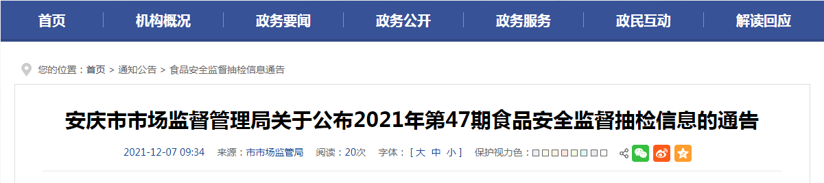 中國(guó)質(zhì)量新聞網(wǎng)訊 12月7日,安徽省安慶市市場(chǎng)監(jiān)督管理局網(wǎng)站公布2021年第47期食品安全監(jiān)督抽檢信息。本次抽檢74批次餐飲食品,合格68批次,不合格6批次。
