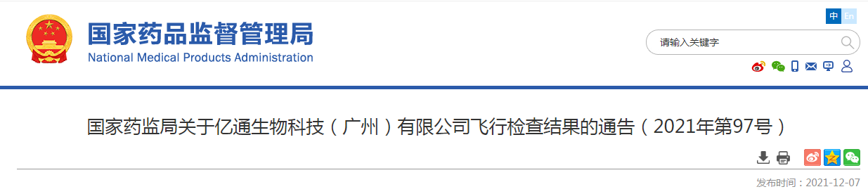 億通生物科技(廣州)有限公司飛行檢查結(jié)果