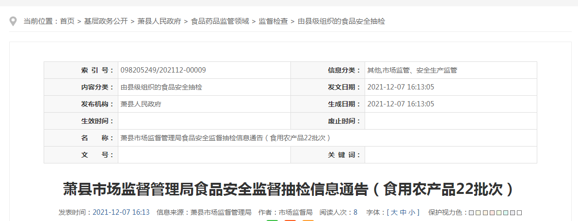 | 2 | NCP21341322349331922 | / | / | 蕭縣特吉利生活購物廣場 | 蕭縣黃口鎮(zhèn)富民路步行街對面1號 | 芹菜 | 計(jì)量稱重 | 2021-11-11 | 氧樂果║0.27mg/kg║0.02mg/kg | 蕭縣/縣抽 | 不合格 |