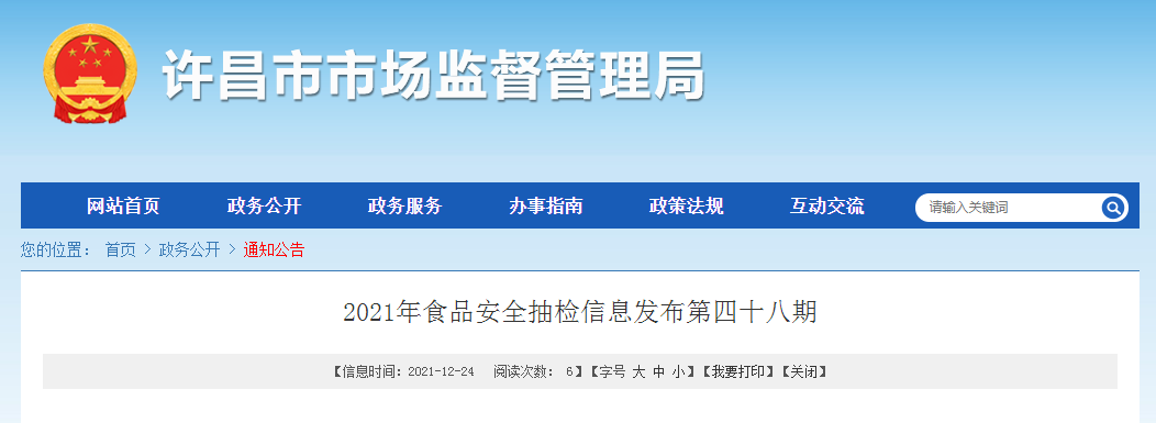 中國質(zhì)量新聞網(wǎng)訊 12月24日,河南省許昌市市場監(jiān)督管理局網(wǎng)站發(fā)布2021年第四十八期食品安全抽檢信息。