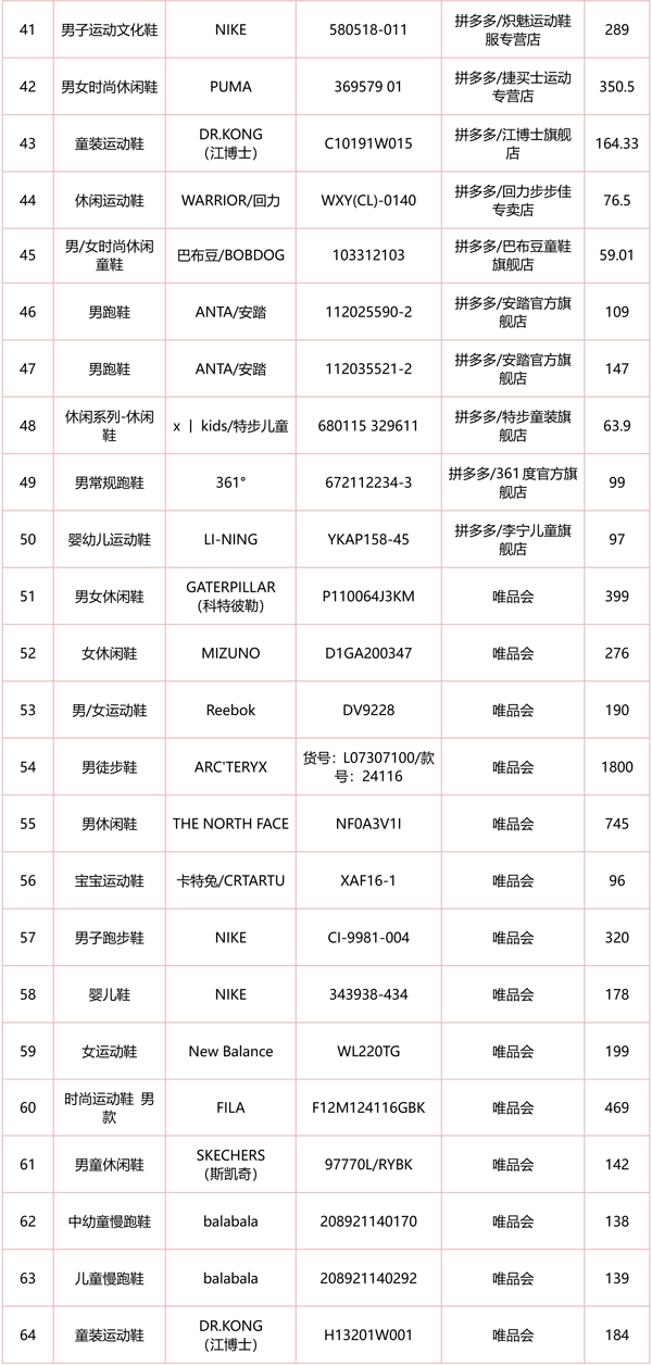 本次比較試驗(yàn)的樣品均為線上購(gòu)買(mǎi),由北京市消費(fèi)者協(xié)會(huì)組織工作人員以普通消費(fèi)者的身份,從天貓、京東、唯品會(huì)、拼 多 多等4個(gè)電商平臺(tái)購(gòu)買(mǎi),共計(jì)49個(gè)品牌的80款樣品,分別為50款成人鞋和30款童鞋。單價(jià)從59.01元至1800元不等,樣品涵蓋范圍較廣,具有較好的代表性。