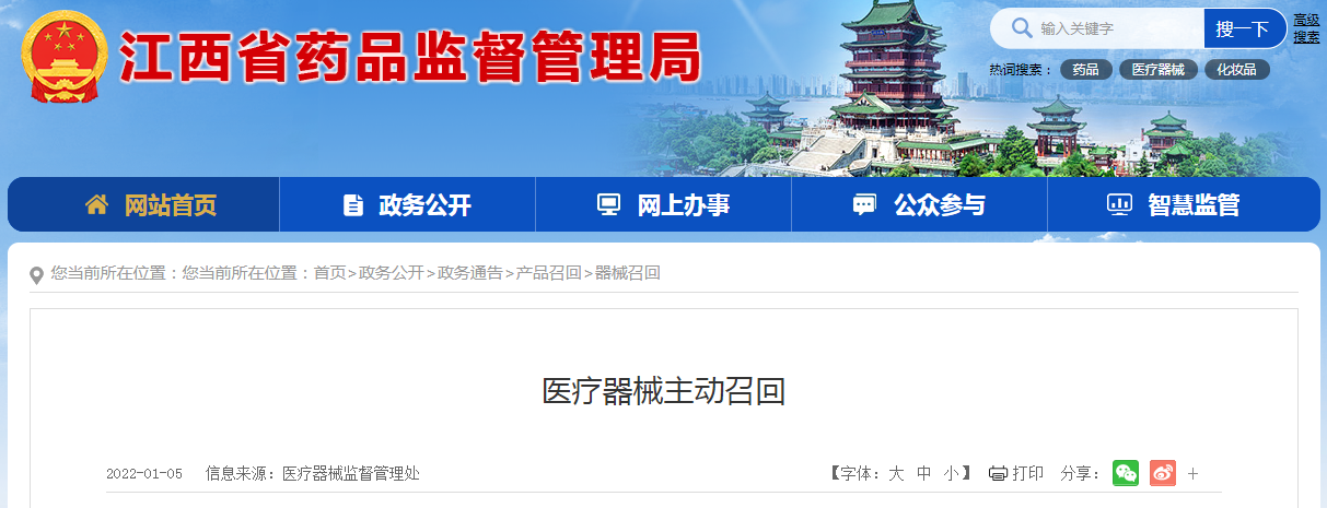中國(guó)質(zhì)量新聞網(wǎng)訊 2022年1月5日,江西省藥監(jiān)局網(wǎng)站發(fā)布醫(yī)療器械主動(dòng)召回信息,南昌市通達(dá)醫(yī)療器械有限公司召回部分一次性使用醫(yī)用口罩。