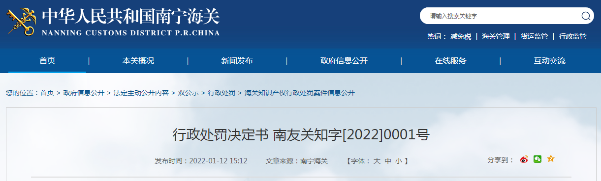 中華人民共和國友誼關(guān)海關(guān)行政處罰決定書 南友關(guān)知字[2022]0001號.pdf