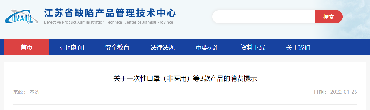 中國(guó)質(zhì)量新聞網(wǎng)訊 據(jù)江蘇省缺陷產(chǎn)品管理技術(shù)中心網(wǎng)站2022年1月25日消息,近期,江蘇省市場(chǎng)監(jiān)督管理局發(fā)現(xiàn)一次性口罩(非醫(yī)用)、男休閑短褲等3款產(chǎn)品可能存在缺陷,并通知標(biāo)稱(chēng)生產(chǎn)企業(yè)開(kāi)展生產(chǎn)者調(diào)查分析。據(jù)反饋,標(biāo)稱(chēng)生產(chǎn)企業(yè)無(wú)法實(shí)施召回活動(dòng)。為保護(hù)消費(fèi)者免受此類(lèi)產(chǎn)品傷害,現(xiàn)根據(jù)《江蘇省缺陷消費(fèi)品召回管理辦法》,發(fā)布該3款產(chǎn)品的消費(fèi)提示。
