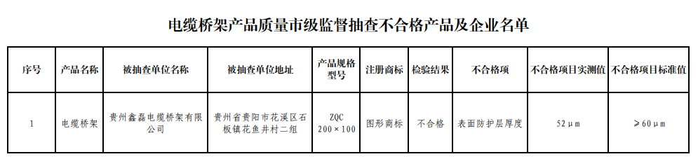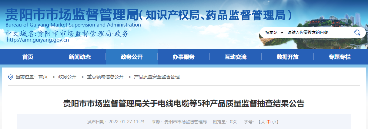 中國質量新聞網訊 2022年1月27日,貴陽市市場監(jiān)督管理局網站發(fā)布關于電線電纜等5種產品質量監(jiān)督抽查結果公告。根據(jù)《中華人民共和國產品質量法》《產品質量監(jiān)督抽查管理暫行辦法》等規(guī)定和有關工作部署,貴陽市市場監(jiān)督管理局組織開展了電線電纜、電纜橋架、配電開關及控制設備、電子元器件、緊固件等5種產品質量監(jiān)督抽查。