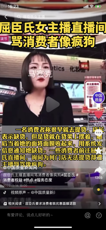 對(duì)于女主播辱罵消費(fèi)者事件,梁振鵬則表示,這同樣說(shuō)明說(shuō)明屈臣氏管理方面出現(xiàn)了漏洞,“不管是聘請(qǐng)的第三方主播人員還是自己公司的主播,必須經(jīng)過(guò)相關(guān)的專(zhuān)業(yè)知識(shí),這里面必然包括素質(zhì)以及如何對(duì)待消費(fèi)者等內(nèi)容,怎么可能會(huì)出現(xiàn)直接辱罵消費(fèi)者的行為?!?/p>