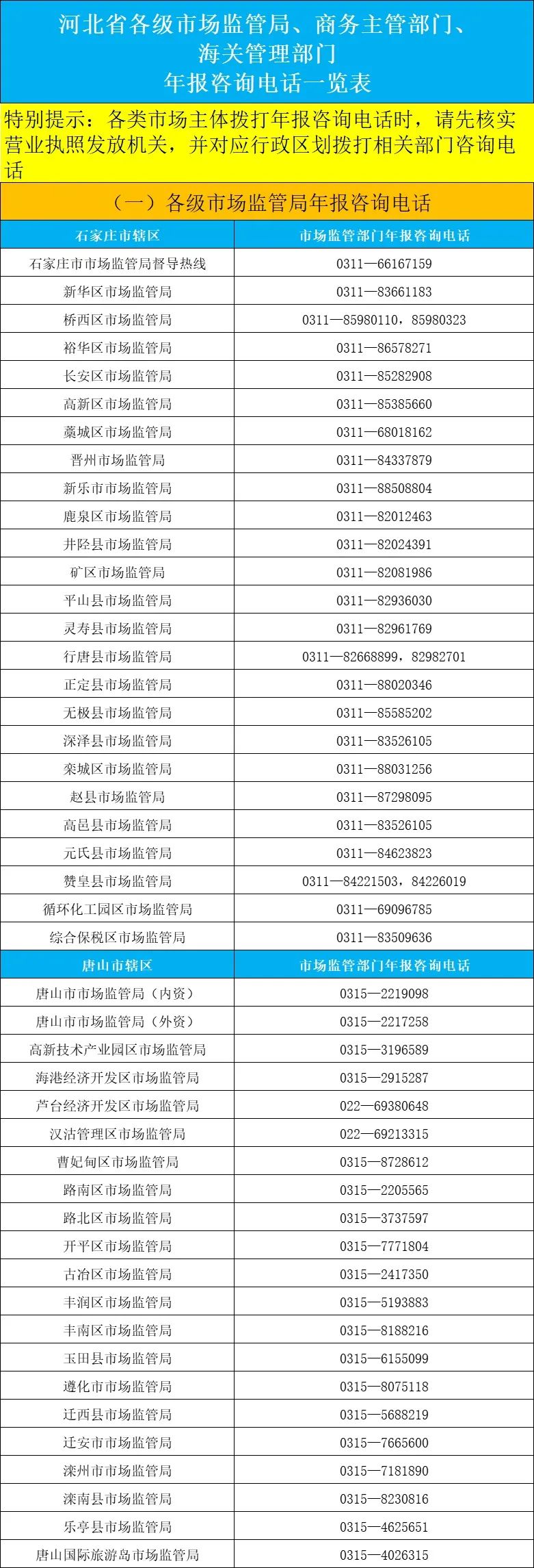 各級市場監(jiān)管部門的年報咨詢電話詳見《河北省各級政府部門年報咨詢服務電話一覽表(2022版)》(可在本文最后查看)。