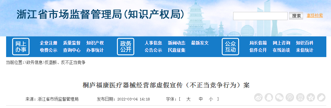 案件名稱:桐廬福康醫(yī)療器械經(jīng)營部虛假宣傳(不正當競爭行為)案;