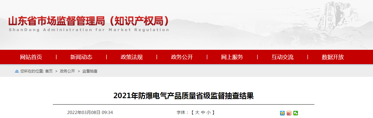 中國質(zhì)量新聞網(wǎng)訊 2022年3月8日,山東省市場監(jiān)管局網(wǎng)站公布2021年防爆電氣產(chǎn)品質(zhì)量省級監(jiān)督抽查結(jié)果。2021年第4批省級監(jiān)督抽查共抽查防爆電氣產(chǎn)品51批次。其中,檢出標(biāo)稱宇祺(山東)智能裝備有限公司生產(chǎn)的1批次礦用隔爆兼本安型信號轉(zhuǎn)換器不合格。