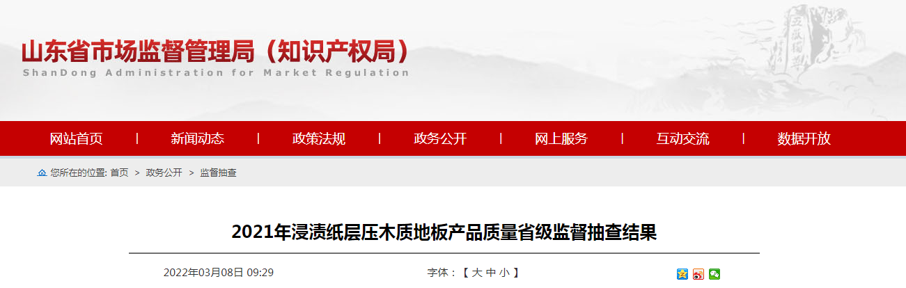 中國質(zhì)量新聞網(wǎng)訊 2022年3月8日,山東省市場監(jiān)管局網(wǎng)站公布2021年浸漬紙層壓木質(zhì)地板產(chǎn)品質(zhì)量省級監(jiān)督抽查結(jié)果。2021年第2批省級監(jiān)督抽查共抽查浸漬紙層壓木質(zhì)地板產(chǎn)品54批次。其中,檢出1批次“聚佰勵”浸漬紙層壓木質(zhì)地板不合格。