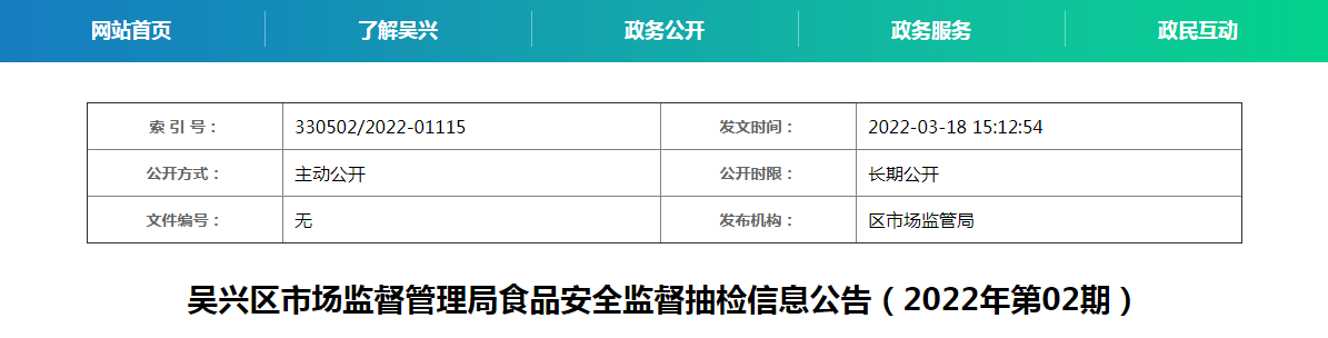 | 26 | / | / | 湖州織里張方國生面店 | 浙江 | 手指年糕 | / | 2022-02-16 | 糧食加工品 | 2022第(02)期 | 2022.03.18 | 湖州市吳興區(qū)市場監(jiān)督管理局 | 浙江華才檢測技術(shù)有限公司 |