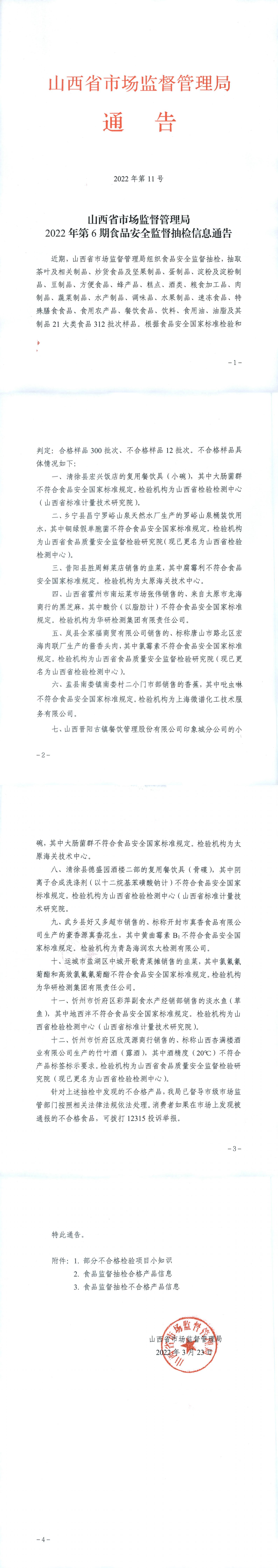 中國質(zhì)量新聞網(wǎng)訊 2022年3月24日,山西省市場監(jiān)管局網(wǎng)站發(fā)布2022年第6期食品安全監(jiān)督抽檢信息通告。