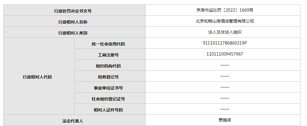 北京市房山區(qū)市場(chǎng)監(jiān)管局依據(jù)相關(guān)規(guī)定,對(duì)北京和暢山房酒店管理有限公司罰款19萬(wàn)元并責(zé)令其改正上述違法行為。