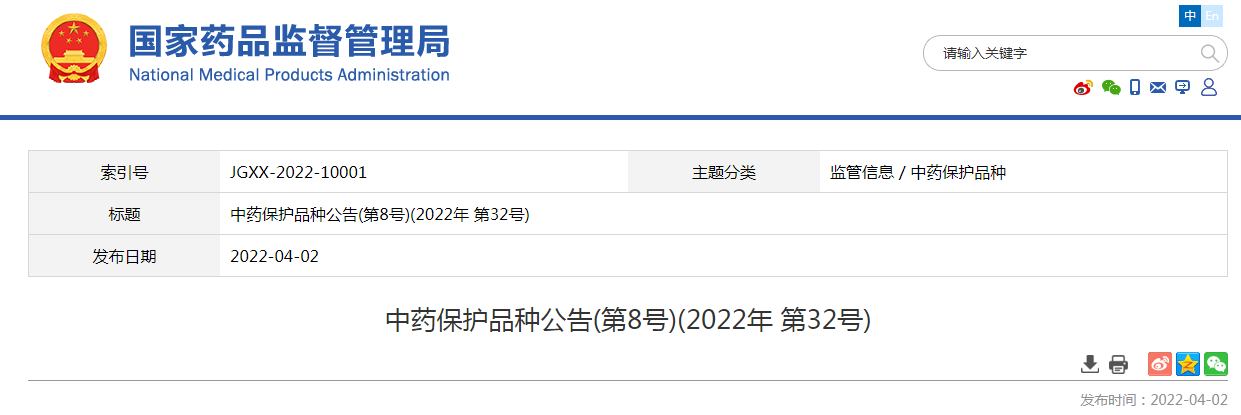 根據(jù)《中藥品種保護條例》的規(guī)定,國家藥品監(jiān)督管理局批準天長億帆制藥有限公司生產(chǎn)的復方銀花解毒顆粒為首家中藥二級保護品種,保護品種號為:ZYB2072022002,保護期限自公告日起七年。