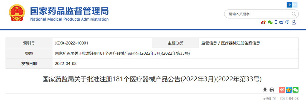 2022年3月,國(guó)家藥品監(jiān)督管理局共批準(zhǔn)注冊(cè)醫(yī)療器械產(chǎn)品181個(gè)。其中,境內(nèi)第三類(lèi)醫(yī)療器械產(chǎn)品138個(gè),進(jìn)口第三類(lèi)醫(yī)療器械產(chǎn)品23個(gè),進(jìn)口第二類(lèi)醫(yī)療器械產(chǎn)品18個(gè),港澳臺(tái)醫(yī)療器械產(chǎn)品2個(gè)(具體產(chǎn)品見(jiàn)附件)。