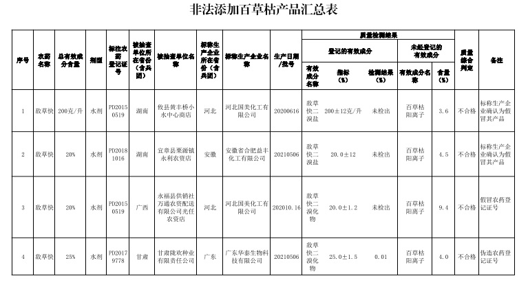 3.非法添加百草枯產(chǎn)品匯總表
