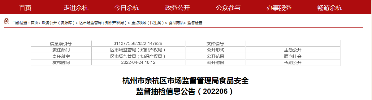 中國質(zhì)量新聞網(wǎng)訊 4月24日,杭州市余杭區(qū)市場監(jiān)督管理局發(fā)布食品安全監(jiān)督抽檢信息(202206)。本期抽檢56批次食品,合格56批次,合格率100%。