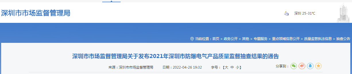 中國質(zhì)量新聞網(wǎng)訊 據(jù)深圳市市場(chǎng)監(jiān)管局網(wǎng)站消息,2021年,該局組織對(duì)深圳市防爆電氣產(chǎn)品開展了產(chǎn)品質(zhì)量監(jiān)督抽查?,F(xiàn)將抽查結(jié)果通告如下: