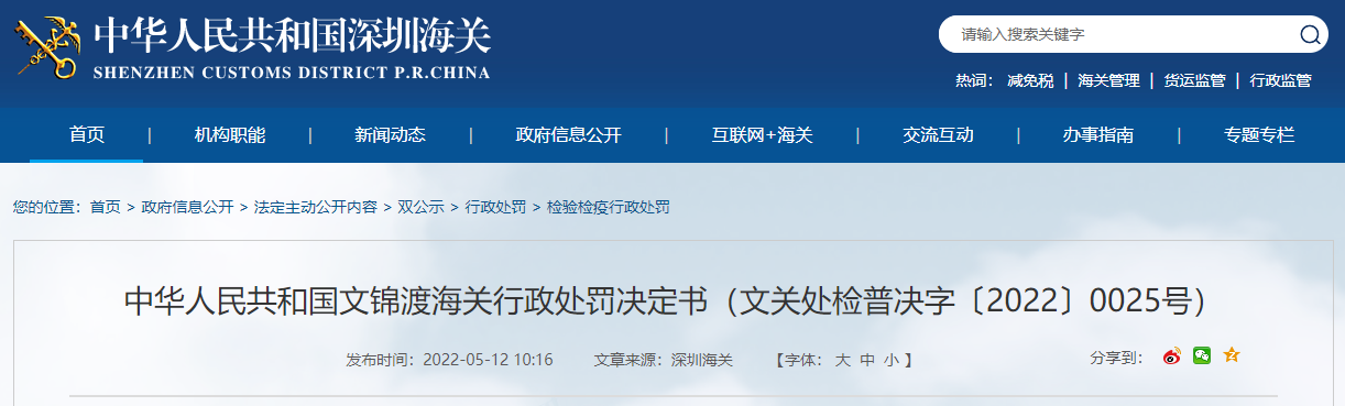 中國(guó)質(zhì)量新聞網(wǎng)訊 近日,文錦渡海關(guān)發(fā)布行政處罰決定書(shū)(文關(guān)處檢普決字〔2022〕0025號(hào)),涉及宜昌國(guó)基科技有限公司。