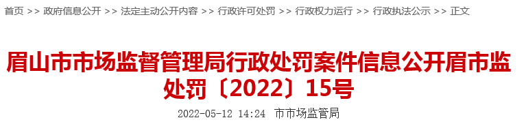 行政處罰決定書文號(hào) | 眉市監(jiān)處罰〔2022〕15號(hào) |