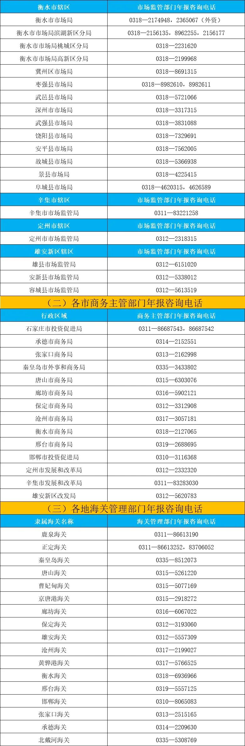 年報(bào)遇到問(wèn)題怎么辦?您可點(diǎn)擊下圖解決年報(bào)問(wèn)題,或者撥打河北省各級(jí)政府部門(mén)年報(bào)咨詢服務(wù)電話解決。