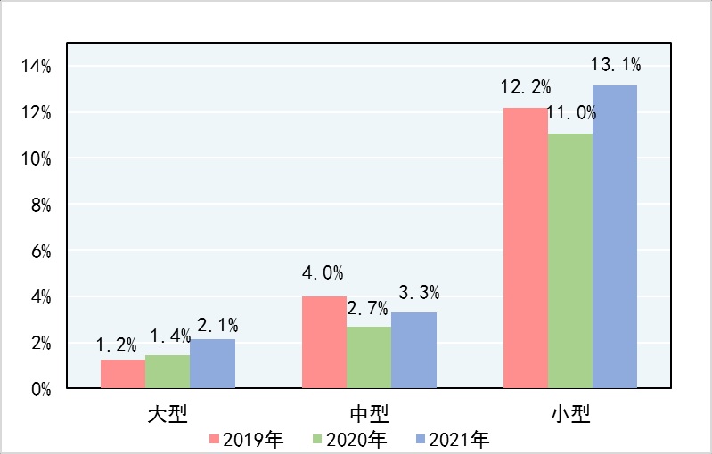 圖2 近三年大中小型企業(yè)產(chǎn)品國家監(jiān)督抽查不合格率對比圖