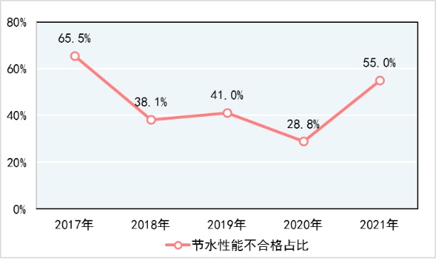 2021年節(jié)水性能不合格占比高于往年,其主要原因:一是近年來部分水暖衛(wèi)浴產(chǎn)品的水效等級強制性國家標準完成制修訂并于2021年正式實施,如GB 25501-2019《水嘴水效限定值及水效等級》(2021年1月1日實施)標準中,流量均勻性項目較上一版本標準的要求明顯提高,由原來的不大于6L/min提高至不大于3L/min,部分生產(chǎn)企業(yè)未嚴格按照新標準要求開展生產(chǎn),導致該項目2021年抽查不合格率達到17.0%;二是水暖衛(wèi)浴行業(yè)小微生產(chǎn)企業(yè)居多,企業(yè)對外購原材料、配件質(zhì)量控制不嚴,如選配不符合標準要求的流量調(diào)節(jié)器和與產(chǎn)品結(jié)構(gòu)不適配的閥芯等零配件,導致水嘴、淋浴用花灑等產(chǎn)品的流量、流量均勻性、水效等級等節(jié)水指標出現(xiàn)不合格。