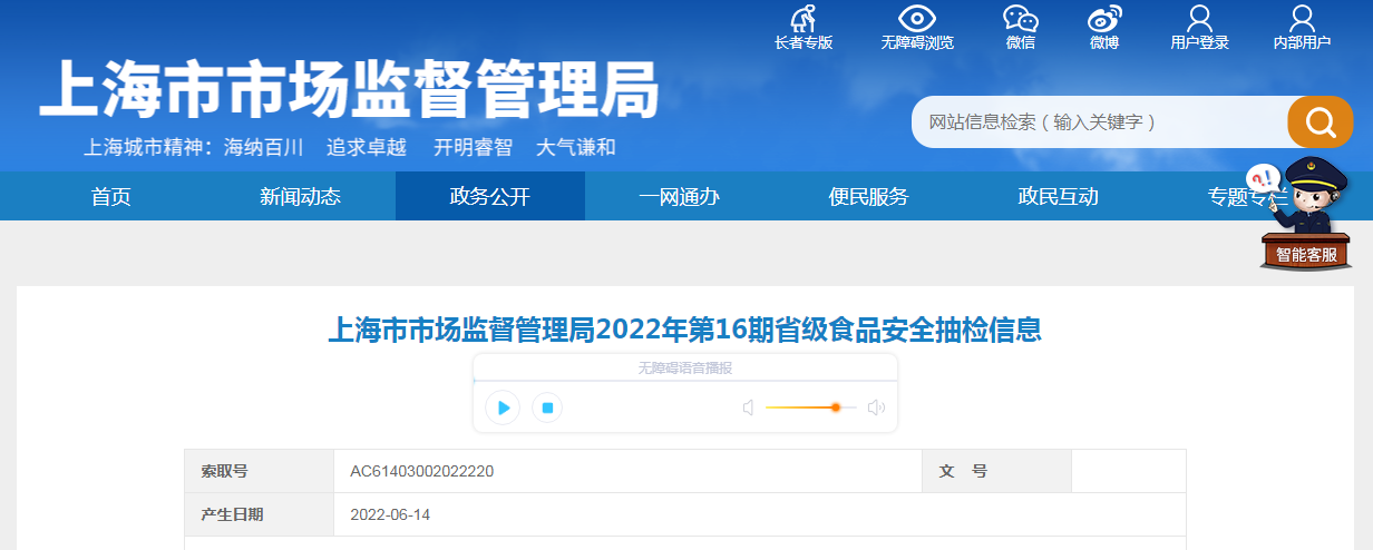 中國質(zhì)量新聞網(wǎng)訊 6月14日,上海市市場監(jiān)督管理局網(wǎng)站發(fā)布2022年第16期省級食品安全抽檢信息。本次抽檢信息涉及3大類食品,包括:水產(chǎn)制品、豆制品、餐飲食品等。抽檢樣品共計(jì)157批次,其中合格156批次、不合格1批次。不合格樣品為豆制品1批次[不合格項(xiàng)目:脫氫乙酸及其鈉鹽(以脫氫乙酸計(jì))]。