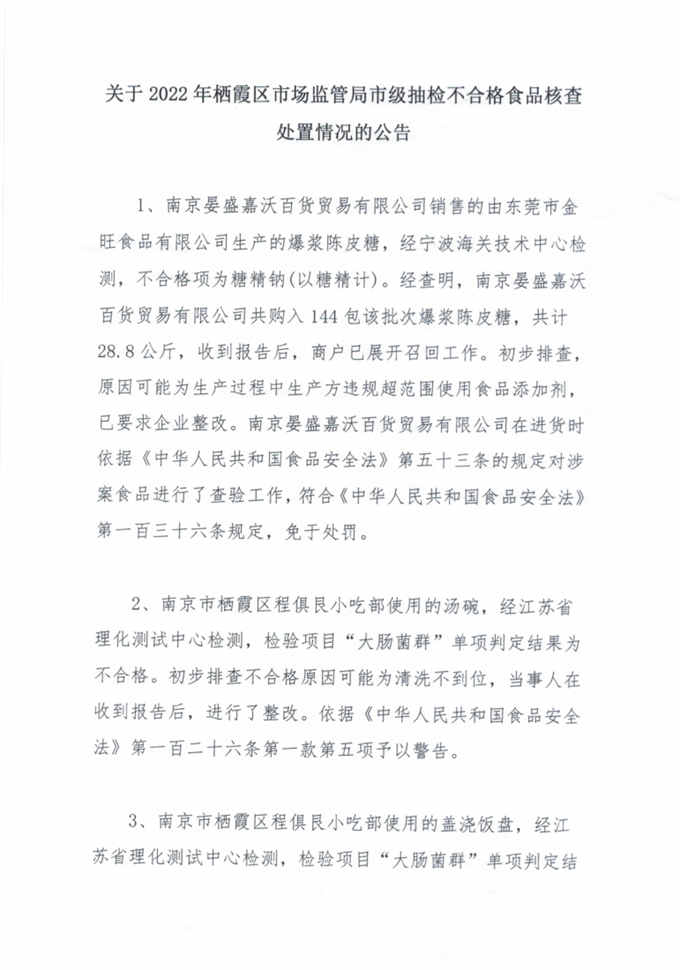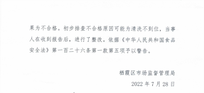 中國質(zhì)量新聞網(wǎng)訊 7月29日,南京市棲霞區(qū)人民政府網(wǎng)站發(fā)布一條不合格餐具核查處置信息,涉及關(guān)于2022年棲霞區(qū)市場(chǎng)監(jiān)管局市級(jí)抽檢不合格餐具的核查處置情況的公告。