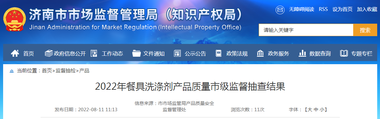 中國(guó)質(zhì)量新聞網(wǎng)訊 8月11日,濟(jì)南市市場(chǎng)監(jiān)管局網(wǎng)站公布2022年餐具洗滌劑產(chǎn)品質(zhì)量市級(jí)監(jiān)督抽查結(jié)果。本次共抽查了全市3家企業(yè)生產(chǎn)的3批次餐具洗滌劑產(chǎn)品,5家企業(yè)銷售的6批次餐具洗滌劑產(chǎn)品,全部符合相關(guān)標(biāo)準(zhǔn)要求。