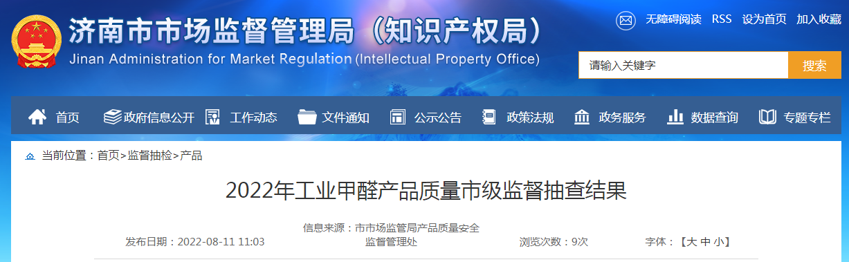 中國質(zhì)量新聞網(wǎng)訊 8月11日,濟(jì)南市市場(chǎng)監(jiān)管局網(wǎng)站公布2022年工業(yè)甲醛產(chǎn)品質(zhì)量市級(jí)監(jiān)督抽查結(jié)果。本次共抽查了全市2家企業(yè)生產(chǎn)的2批次工業(yè)甲醛產(chǎn)品,均為生產(chǎn)領(lǐng)域,全部符合相關(guān)標(biāo)準(zhǔn)要求。