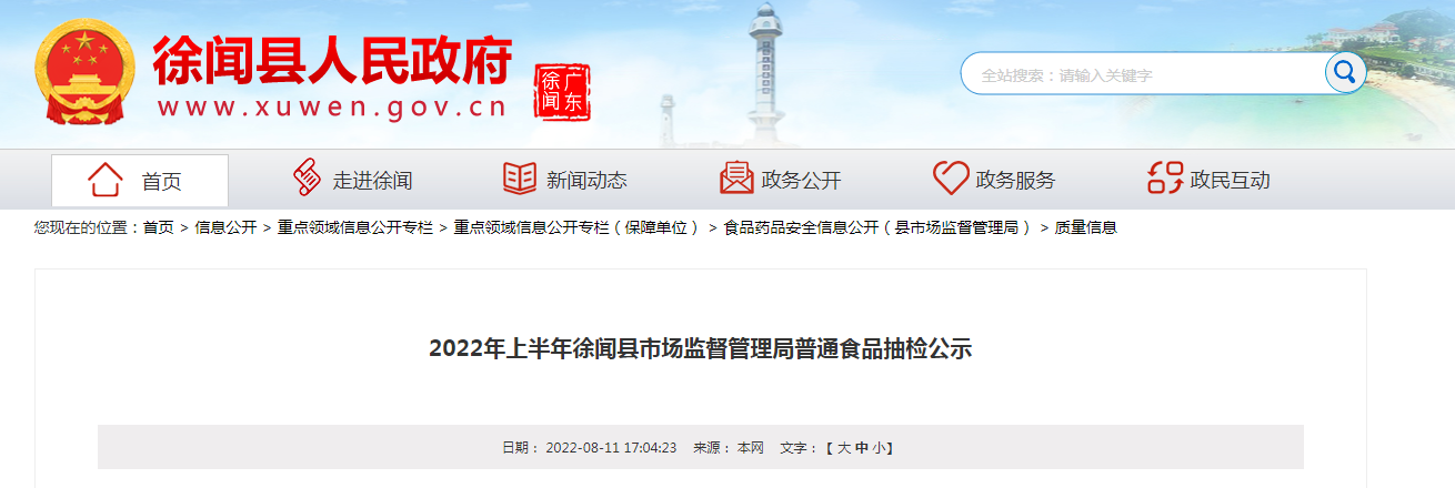 中國質(zhì)量新聞網(wǎng)訊 近日,廣東省徐聞縣市場監(jiān)督管理局公示2022年上半年普通食品抽檢情況。