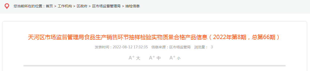 | 天河區(qū)市場監(jiān)督管理局食品生產(chǎn)銷售環(huán)節(jié)抽樣檢驗實物質(zhì)量合格產(chǎn)品信息(2022年第8期,總第66期) | ||||||||||