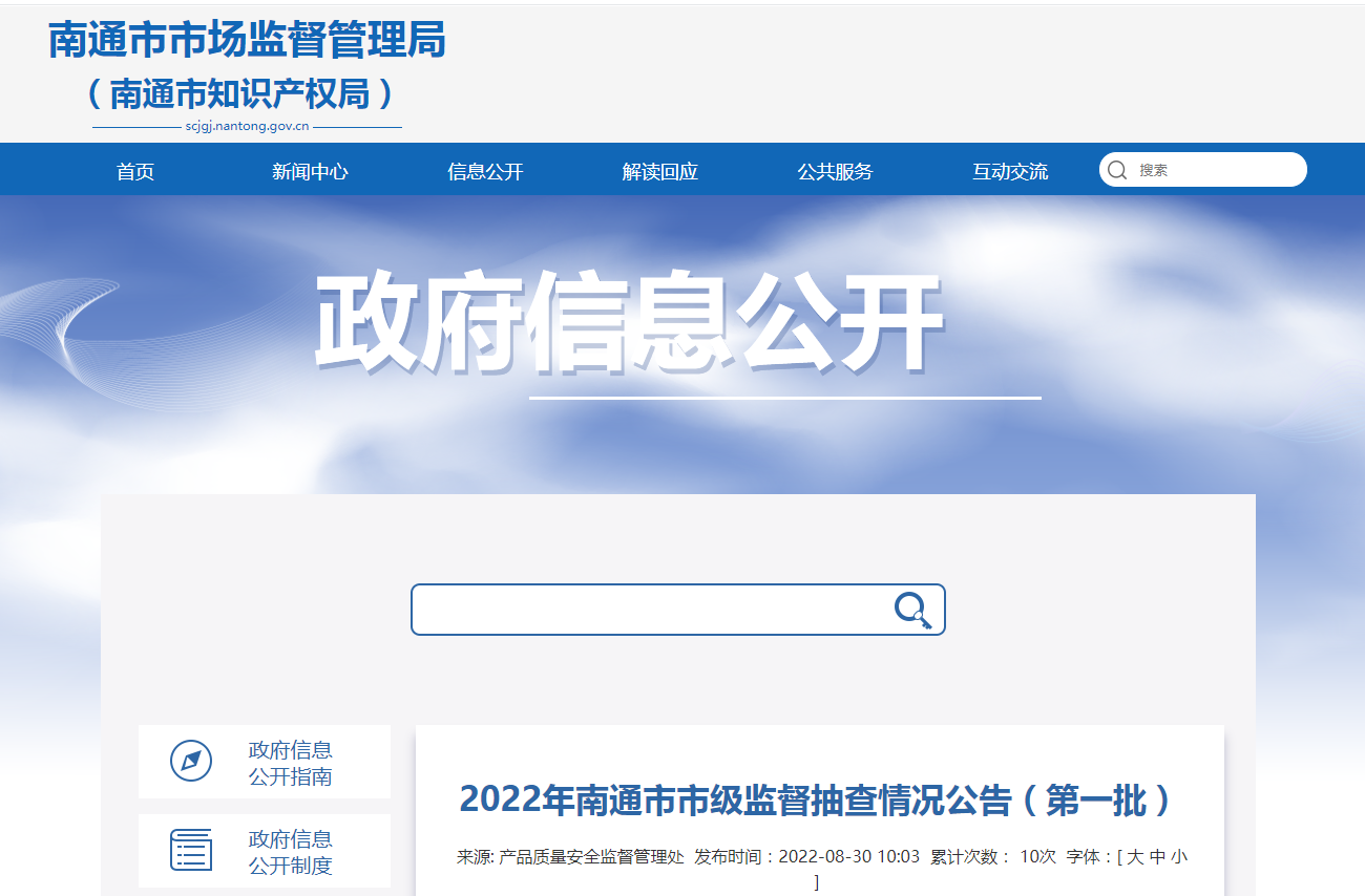 中國(guó)質(zhì)量新聞網(wǎng)訊 近日,2022年江蘇省南通市市級(jí)監(jiān)督抽查情況公告(第一批)公布。