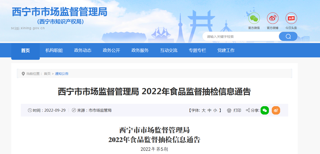 中國(guó)質(zhì)量新聞網(wǎng)訊 9月29日,西寧市市場(chǎng)監(jiān)督管理局網(wǎng)站發(fā)布2022年食品監(jiān)督抽檢信息通告(2022年第5期)。通告稱,近期,該局組織抽檢各類食品1411批次。經(jīng)檢測(cè):所檢項(xiàng)目合格1395批次,不合格16批次。