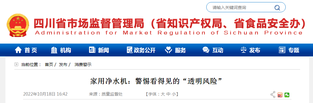 隨著生活水平提高,人們對(duì)關(guān)乎健康的飲用水也提出了更高要求,家用凈水機(jī)走進(jìn)了千家萬戶。近2年國際論文雜志提出的“微塑料”新概念既被凈水器廠家廣泛用于設(shè)備功效宣傳,也因其是否具備危害性而受到持續(xù)關(guān)注和研究,凈水機(jī)的質(zhì)量狀況牽動(dòng)著廣大消費(fèi)者的身體健康。為切實(shí)維護(hù)消費(fèi)者健康安全,按照“早發(fā)現(xiàn)、早預(yù)警、早處置”的風(fēng)險(xiǎn)監(jiān)控要求,四川省市場(chǎng)監(jiān)督管理局根據(jù)網(wǎng)絡(luò)輿論和消費(fèi)者投訴,針對(duì)家用凈水機(jī)產(chǎn)品開展了產(chǎn)品質(zhì)量安全風(fēng)險(xiǎn)監(jiān)測(cè),現(xiàn)予以發(fā)布消費(fèi)提示,提醒消費(fèi)者謹(jǐn)慎消費(fèi)、安全使用。