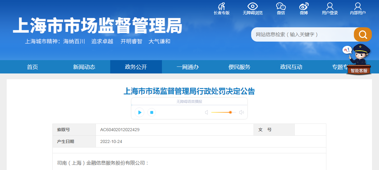 上海市市場(chǎng)監(jiān)督管理局行政處罰決定公告