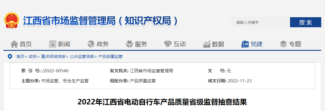 | 2022年江西省電動(dòng)自行車產(chǎn)品質(zhì)量省級(jí)監(jiān)督抽查產(chǎn)品及企業(yè)名單 | |||||||||||