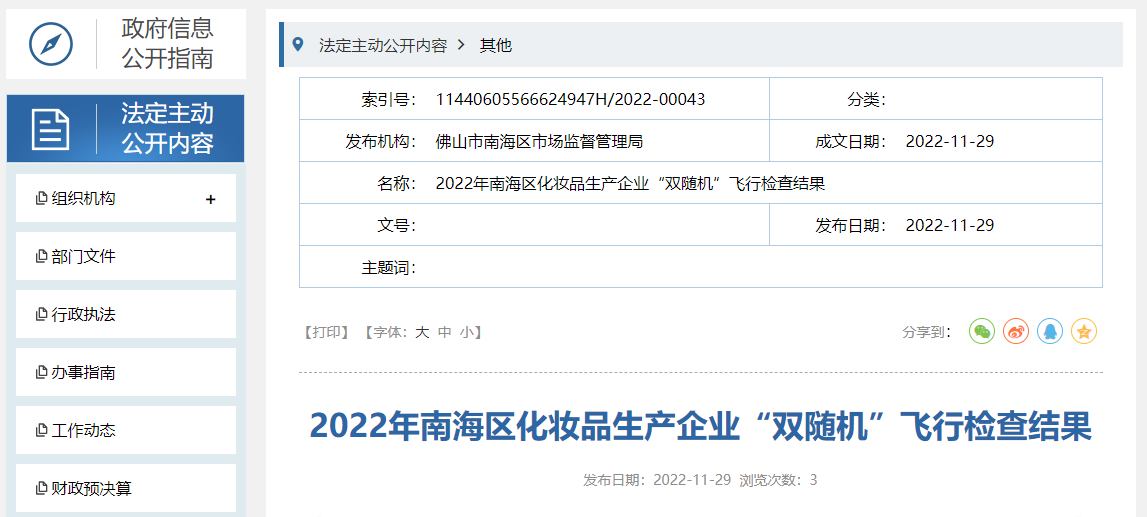 中國質(zhì)量新聞網(wǎng)訊 近日,廣東省佛山市南海區(qū)市場監(jiān)督管理局發(fā)布2022年南海區(qū)化妝品生產(chǎn)企業(yè)“雙隨機”飛行檢查結(jié)果,涉及佛山市洛麗奇科技有限公司、佛山市奧勃施生物科技有限公司、廣東科美生物科技有限公司、廣東慶昌生物科技有限公司等。
