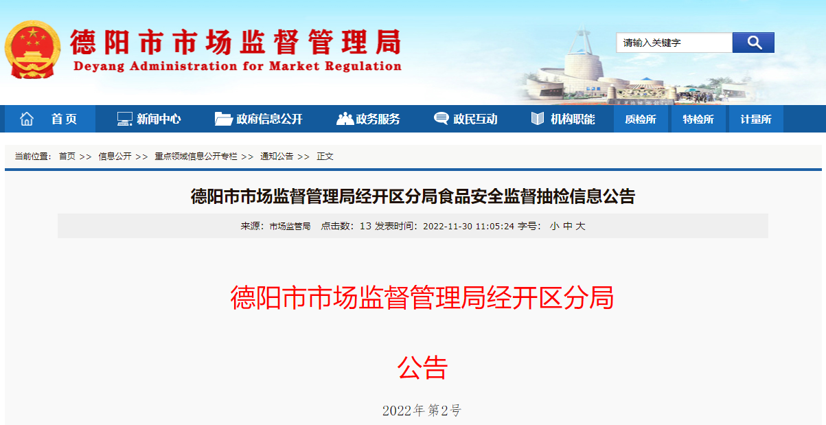 中國(guó)質(zhì)量新聞網(wǎng)訊 據(jù)四川省德陽市市場(chǎng)監(jiān)管局網(wǎng)站11月30日消息,近期,德陽市市場(chǎng)監(jiān)督管理局經(jīng)開區(qū)分局組織抽檢食用農(nóng)產(chǎn)品,共檢測(cè)147批次,其中138批次合格,9批次不合格。