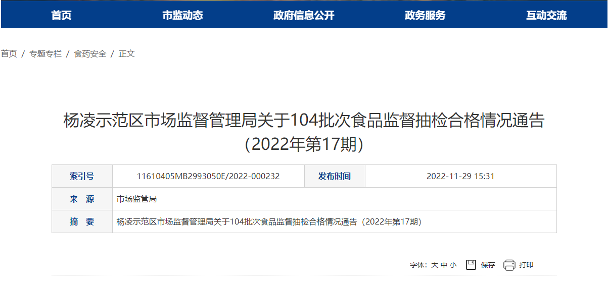 中國質(zhì)量新聞網(wǎng)訊 11月29日,陜西省楊凌示范區(qū)市場監(jiān)督管理局發(fā)布關(guān)于104批次食品監(jiān)督抽檢合格情況通告(2022年第17期)。